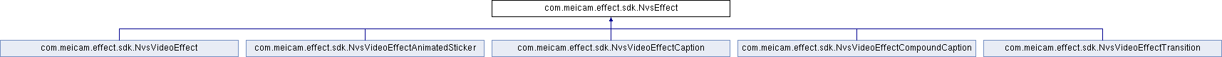 特效类是视频特效,音频特效,音频转场,视频转场等不同类型特效的基类。在SDK框架中,特效是很关键的一部分,派生自NvsEffect的每种不同类型的特效,或通过片段实例,或时间线实例,或轨道实例来添加,移除和获取。同时,特效类中提供了不同的API接口来设置和获取特效参数类型。