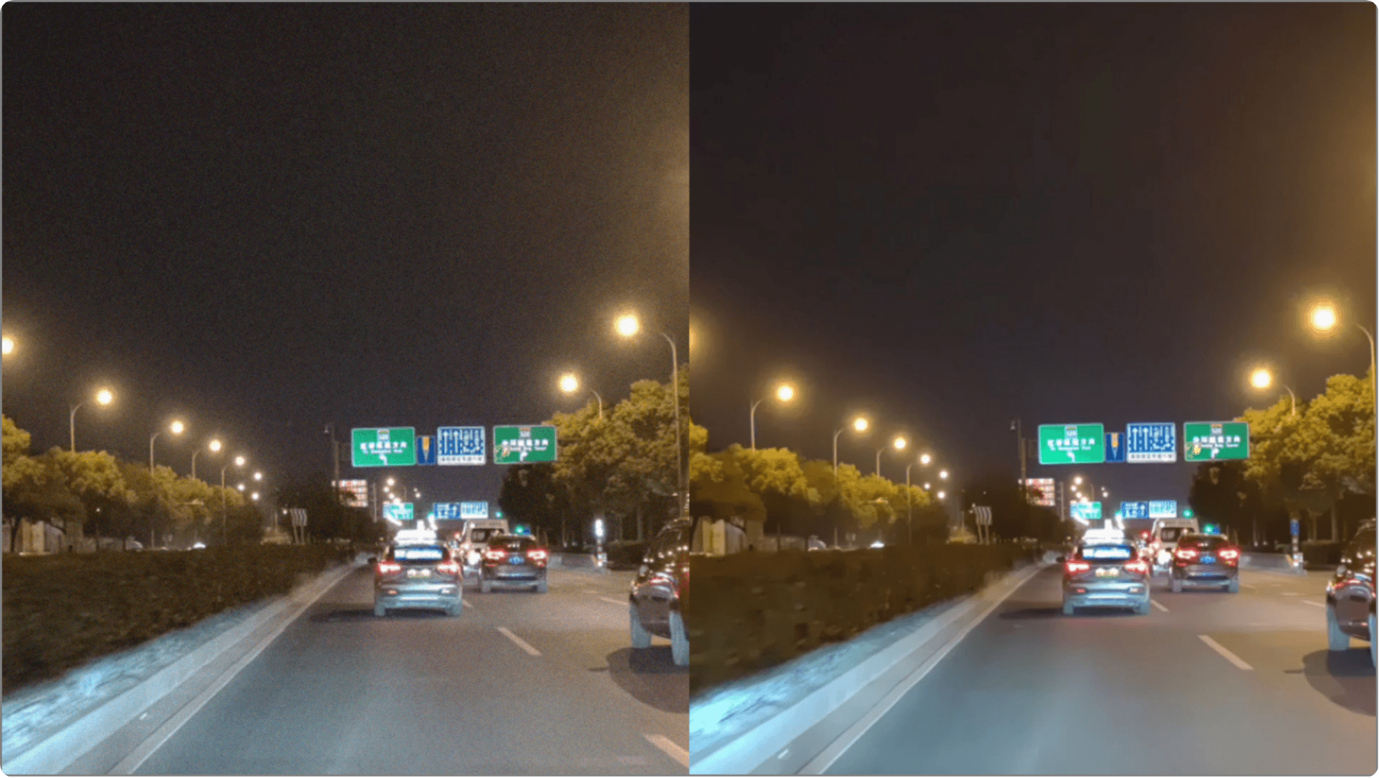 MeiShe's night scene enhancement algorithm is mainly aimed at the noise and image quality imaging defects of the camera in low- light environments.Through the combination of Meishe's self-developed AI recognition algorithm, image noise reduction algorithm and intelligent color adjustment algorithm, the first judgment is through AI. , automatically open the night scene enhancement algorithm, at the same time, through the image noise reduction algorithm, remove the noise in the picture, and automatically brighten the picture and color correction, and finally form a night scene image with excellent detail retention, pure color and less noise. The solution can perform night scene enhancement processing in real time during shooting to improve the quality of video preview and recorded video.