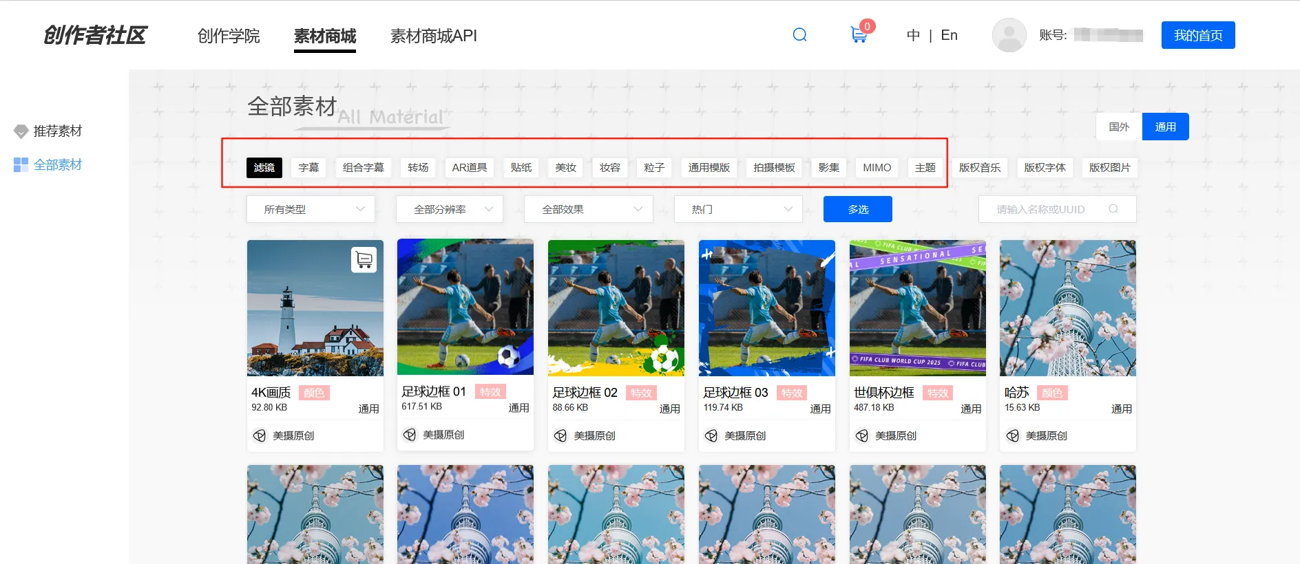 【素材中心】-【全部素材】-【选择分类】-【浏览素材】-【购买0积分素材】