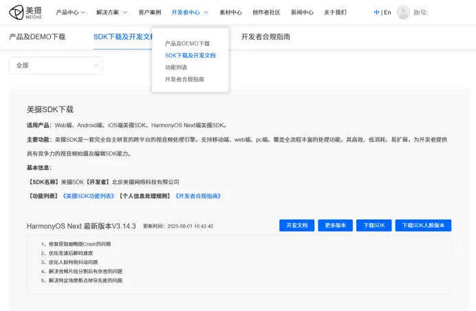 首先登陆美摄SDK网站:www.meishesdk.com